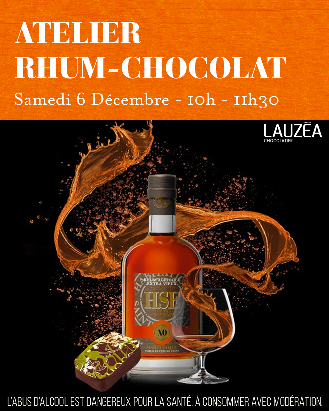Plongez dans un voyage sensoriel unique avec notre atelier de dégustation rhums & chocolats. Découvrez des accords subtils entre cacao grand crus LAUZEA et Rhums d’exception HSE. Apprenez à identifier les arômes et l’harmonie entre ces 2 univers.